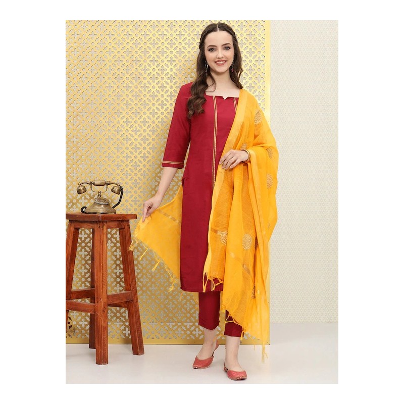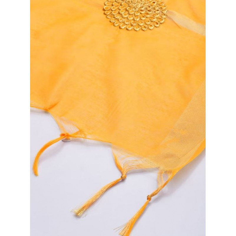 Индийское покрывало на голову дупатта желтого цвета с вышивкой.