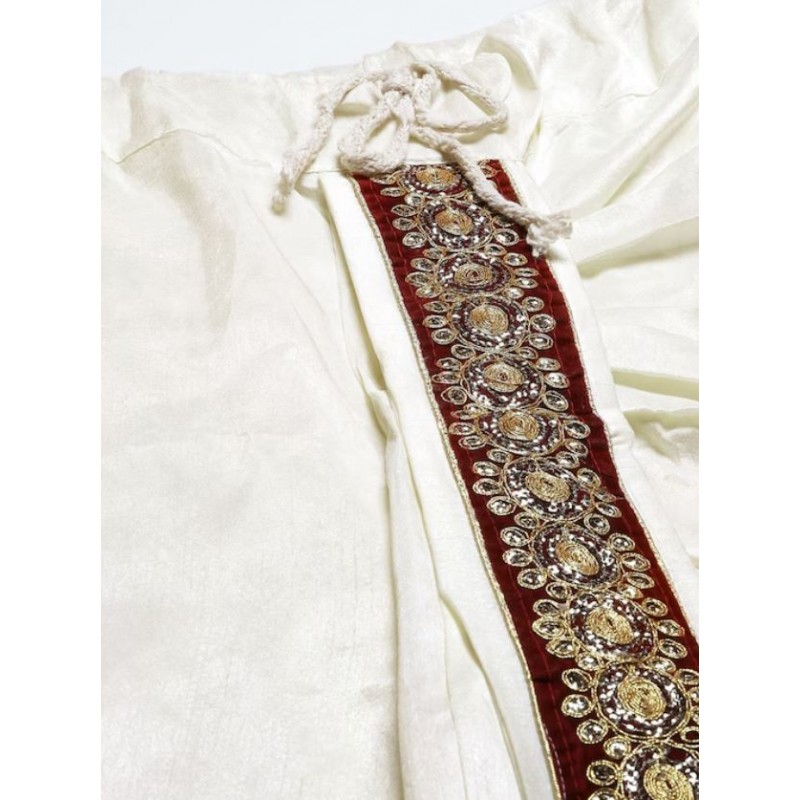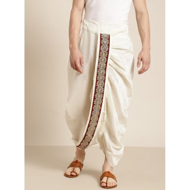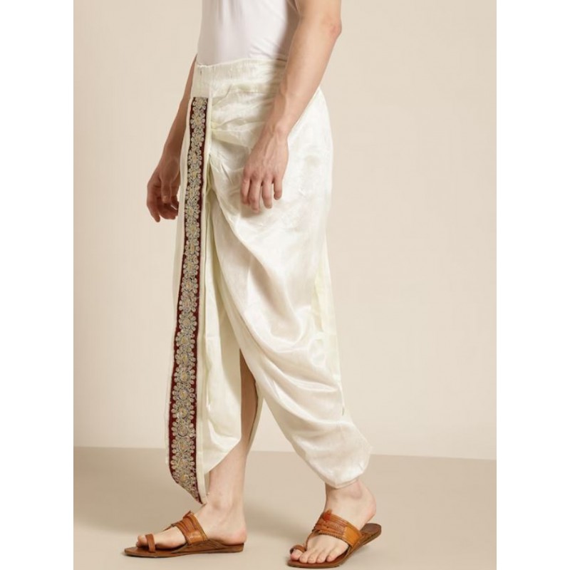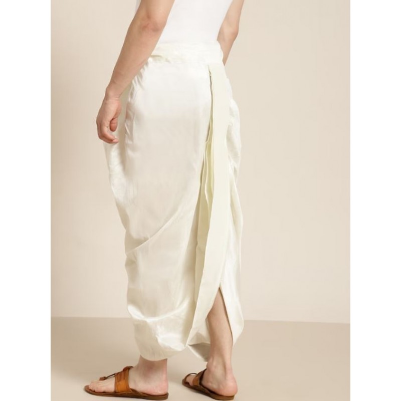 Индийские мужские штаны дхоти белого цвета (кремовый оттенок). На поясе фиксация шнурком.
