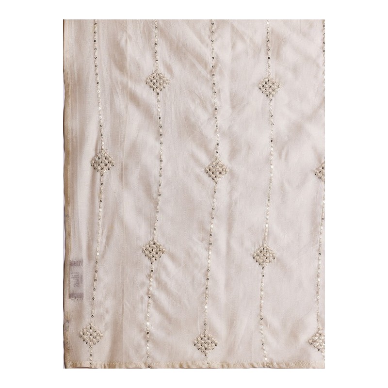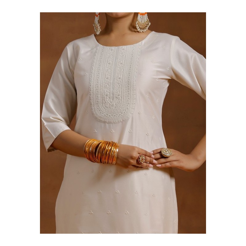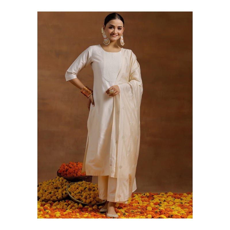 Индийский костюм сальвар камиз кремовый c изящной вышивкой нитями и мелкими пайетками:
