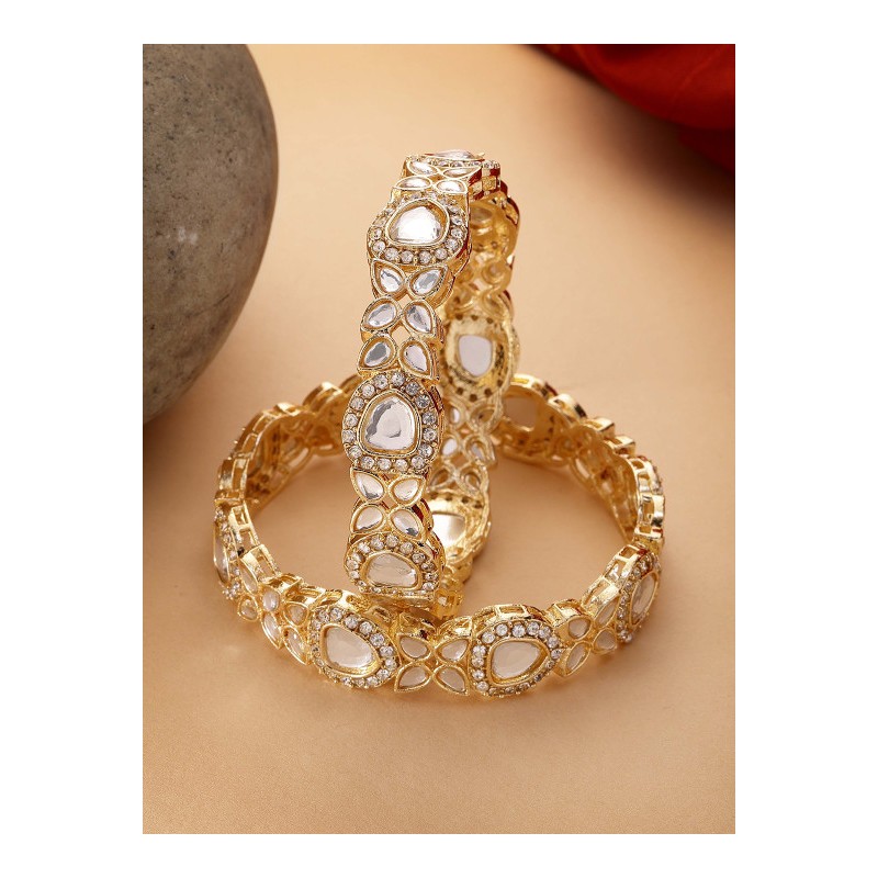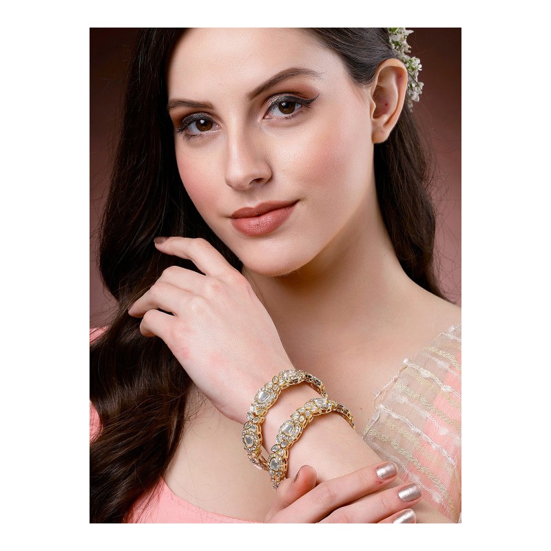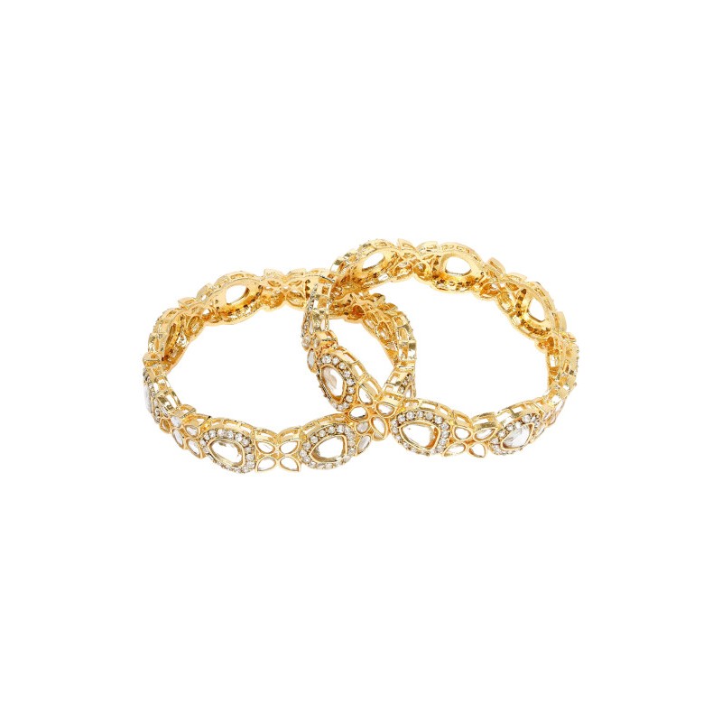 Индийские браслеты (2 штуки) из бижутерного сплава с золотым покрытием и белыми камнями.