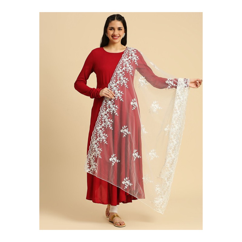 Индийское покрывало на голову дупатта белого цвета с вышивкой нитью