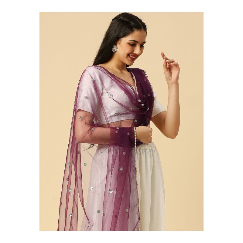 Индийское покрывало на голову дупатта с красивой вышивкой пайетками и обшитая золототистой тесьмой готта патти со всех сторон.