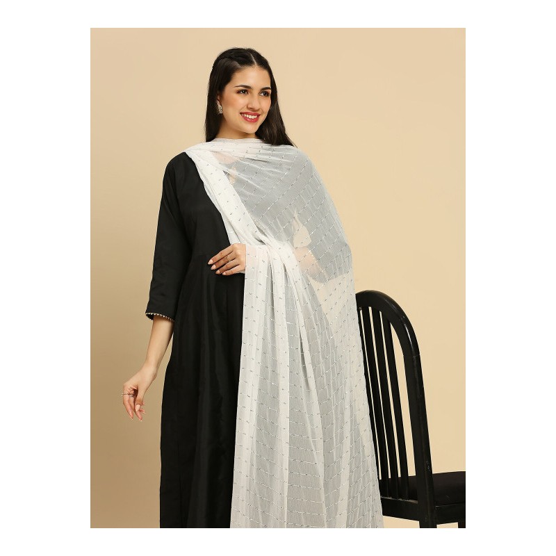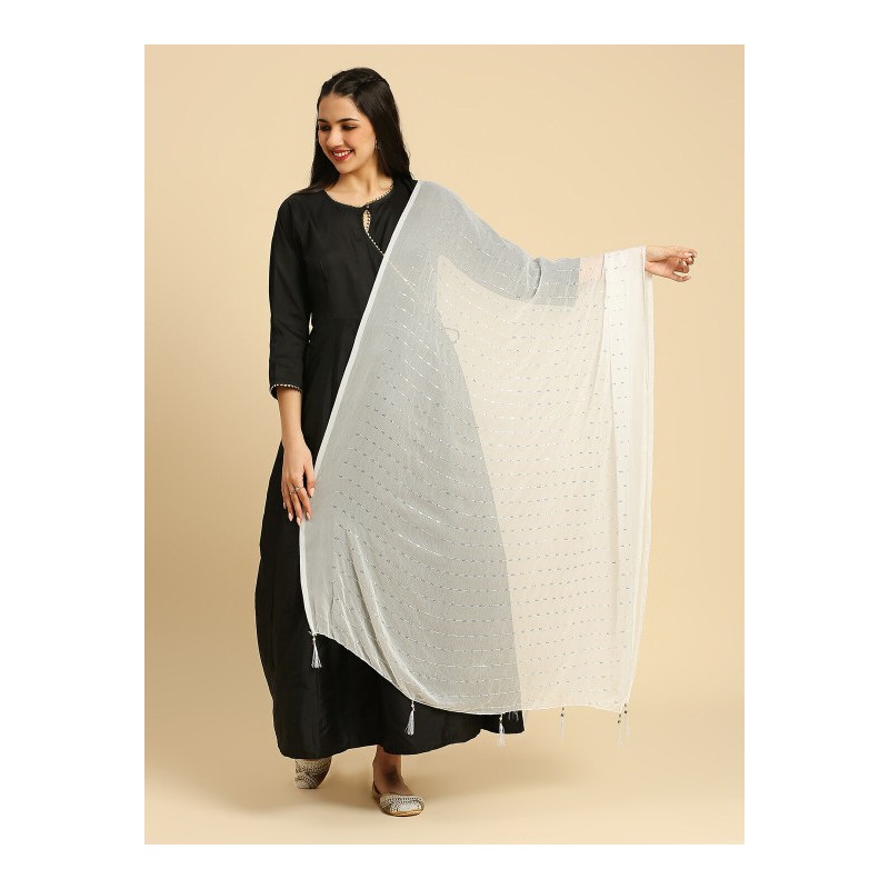 Индийское покрывало на голову дупатта с красивой вышивкой пайетками и милыми кисточками на углах.