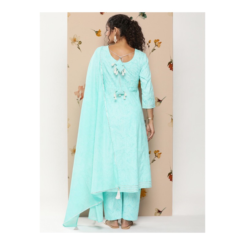 3) дупатта голубая, по периметру украшена серебристой тесьмой, на углах кисточки.