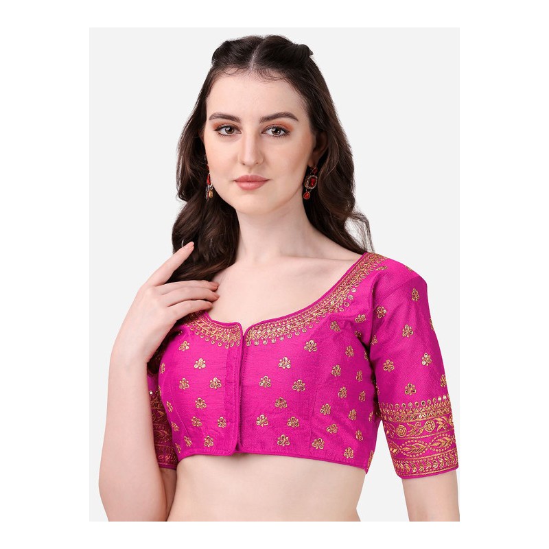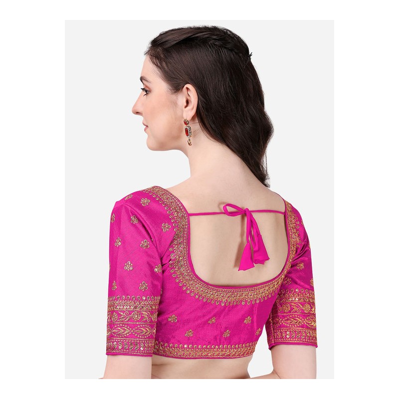 Индийская блузка чоли ярко розовая с вышивкой золотистой тесьмой, пайетками.