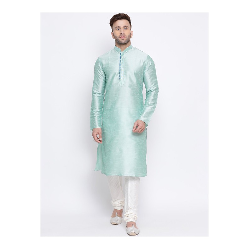 Размер L: обхват грудной клетки 110 см, длина курты 109 см, талия 105 см, длина рукава 60 см, ширина спины 48,5 см, длина брюк 116 см (на щиколотках чуридары должны собираться в гармошку).