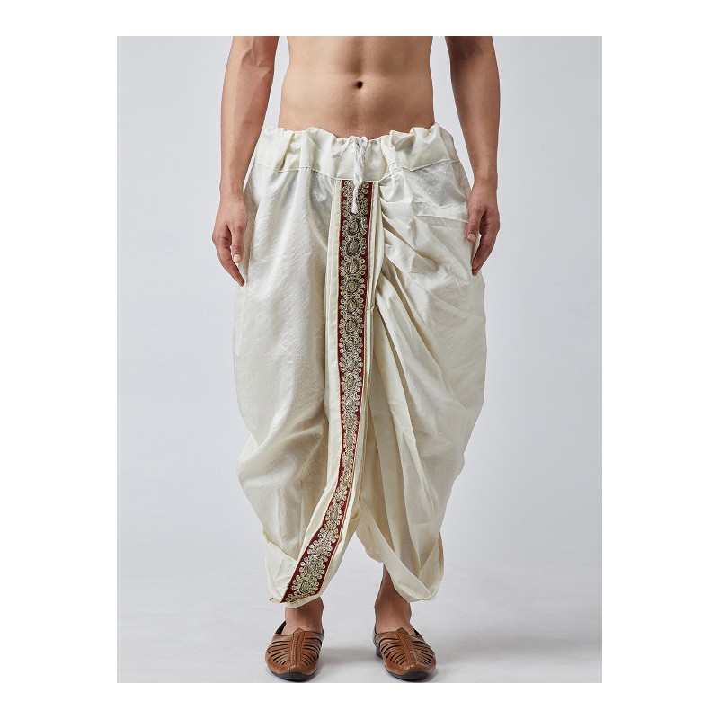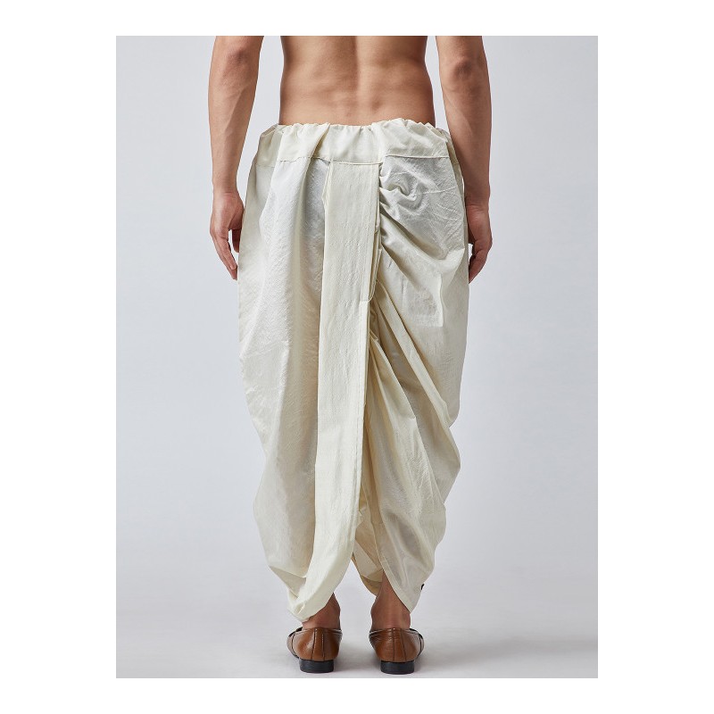 Индийские мужские штаны дхоти белого цвета. На поясе фиксация шнурком.