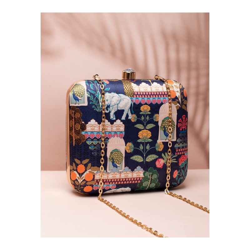 Индийская сумка клатч темно синяя с этническим принтом.