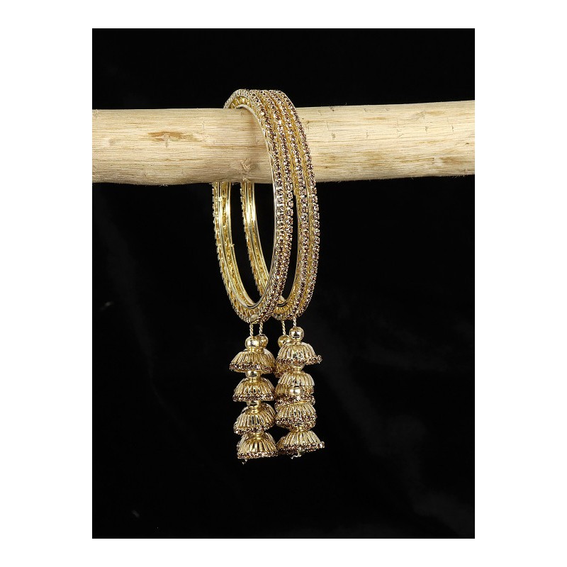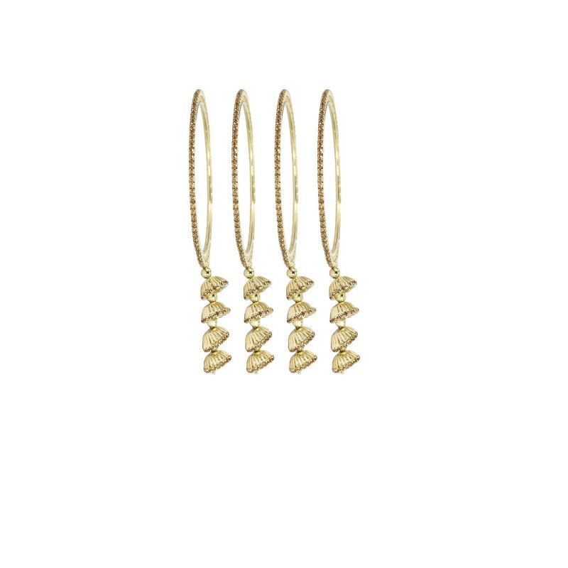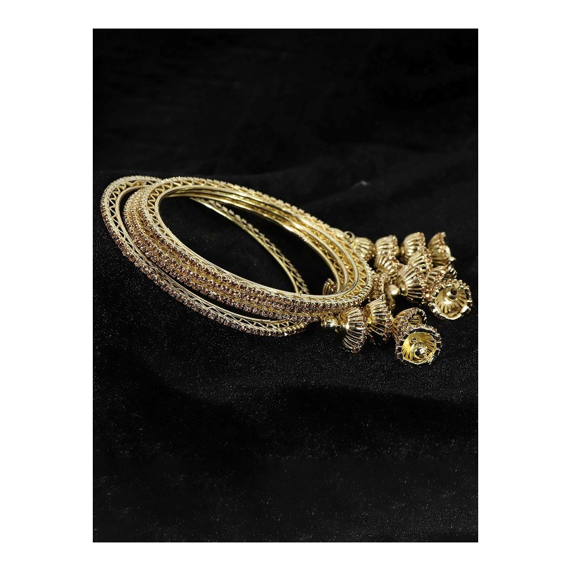 Индийские браслеты (4 штуки) из бижутерного сплава под золото со сверкающими стразами и подвесками.