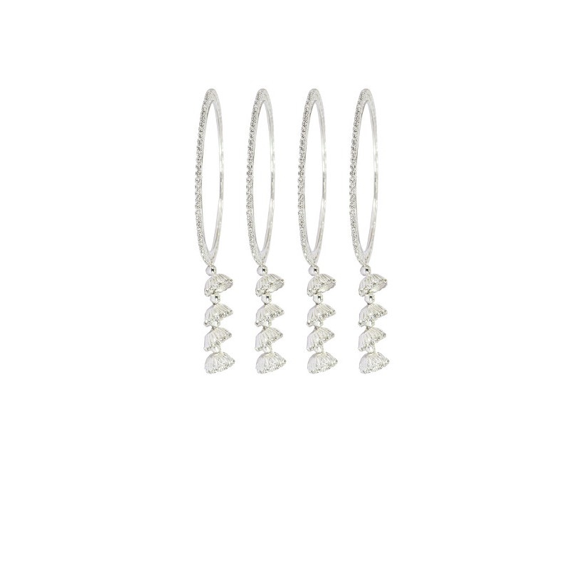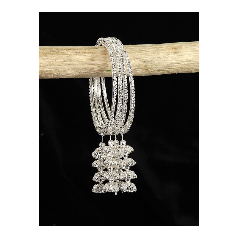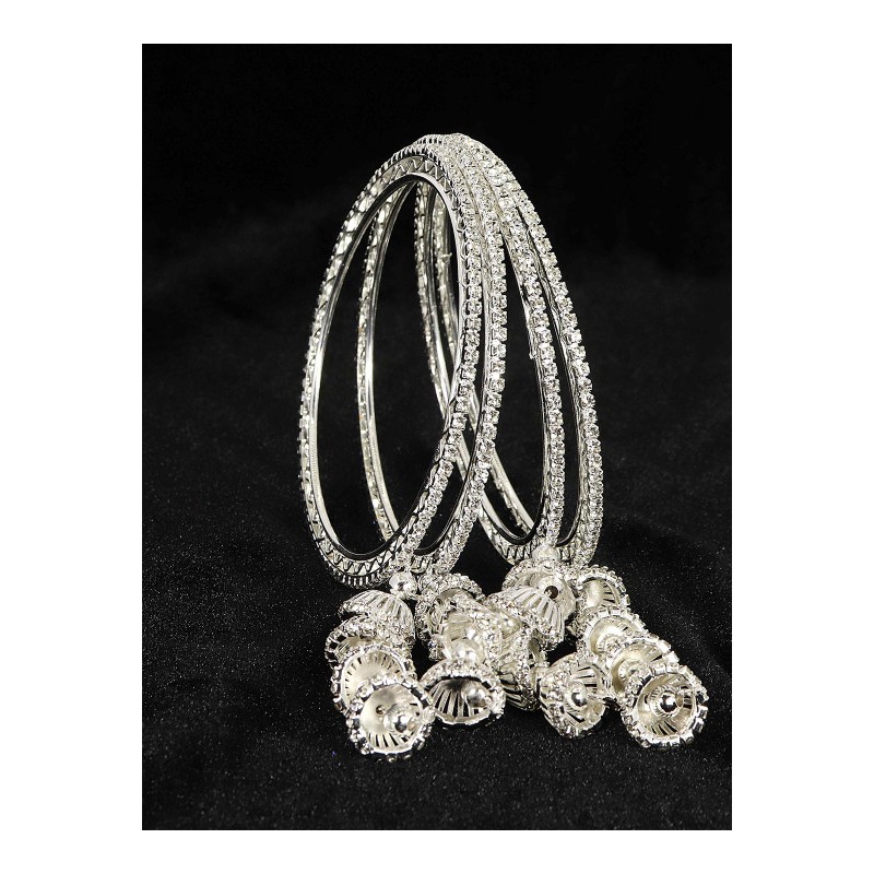 Индийские браслеты (4 штуки) из бижутерного сплава под серебро со сверкающими стразами и подвесками.