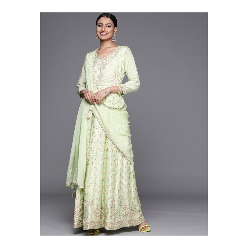 Размер L: обхват груди 100 см, талия 90 см, длина платья 130 см, длина брюк 130 см, размер дупатты 230х100 см