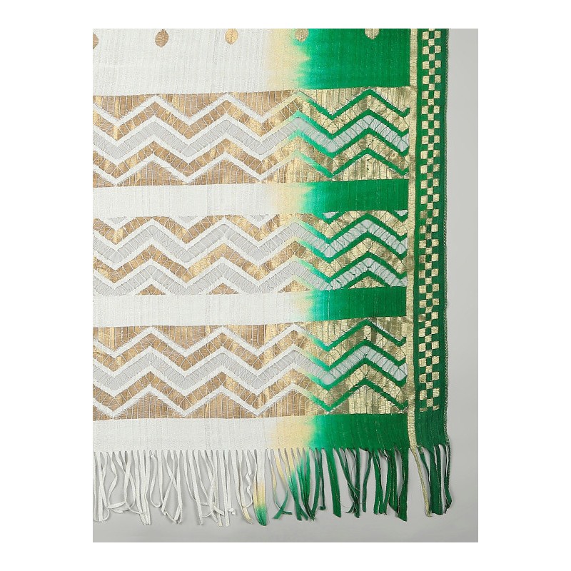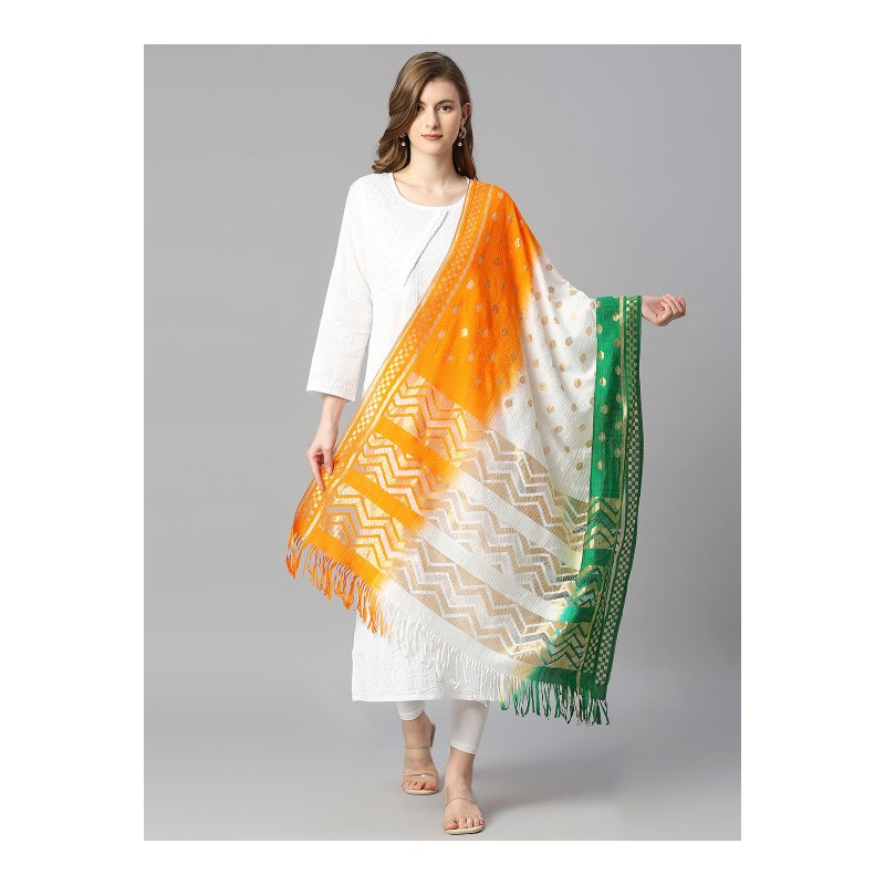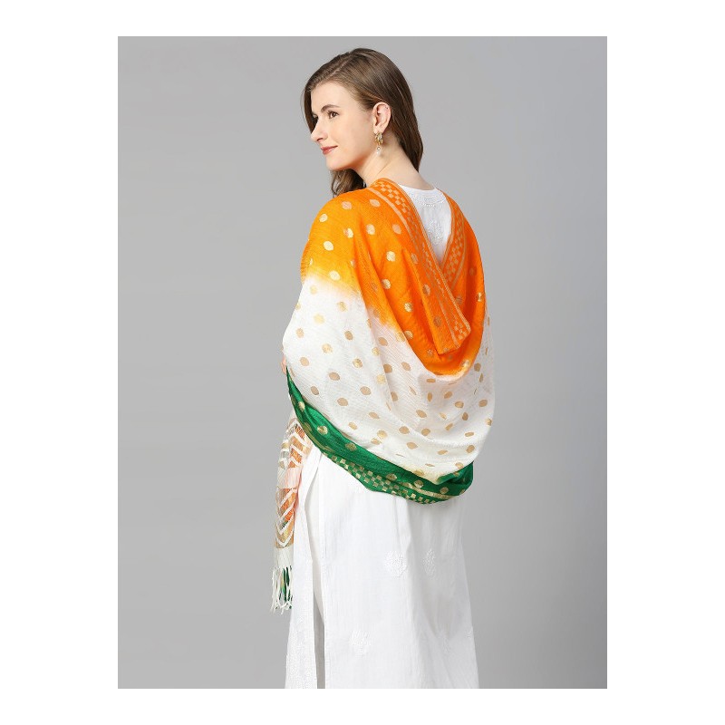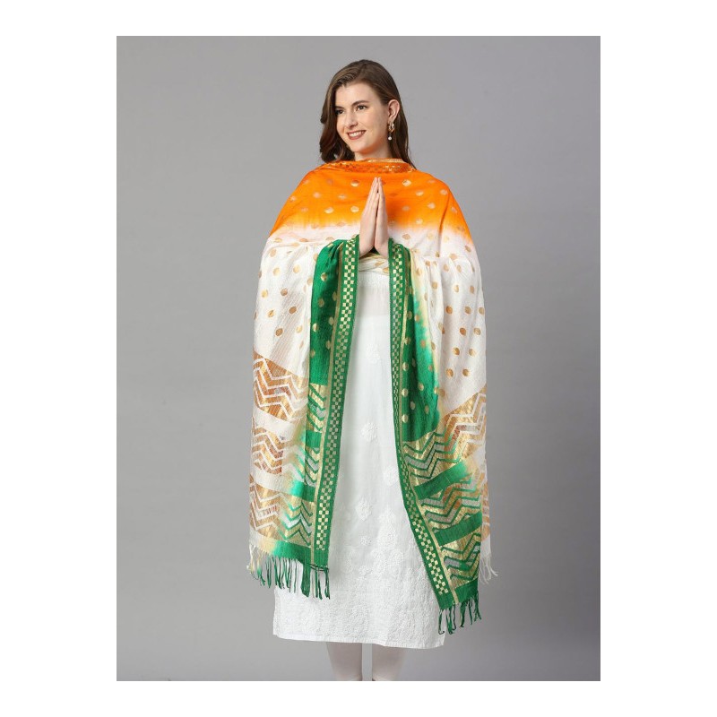 Индийское покрывало на голову дупатта в цветах индийского флага и бахрамой по краю.
