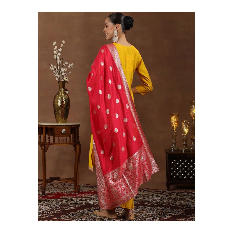 3) дупатта красная с узорами золотой нитью (плетение ткани).