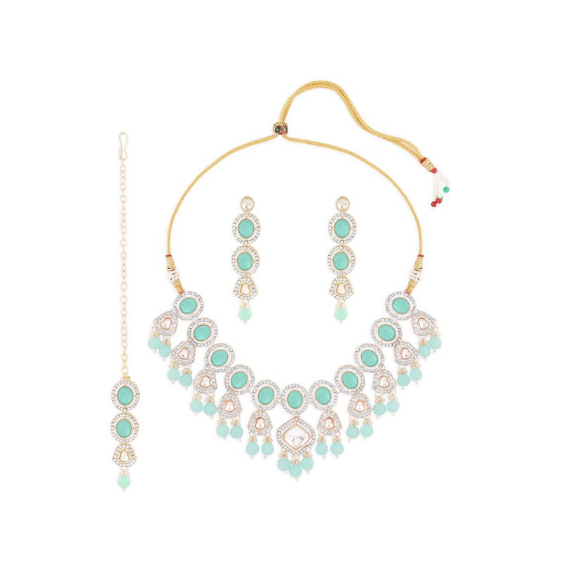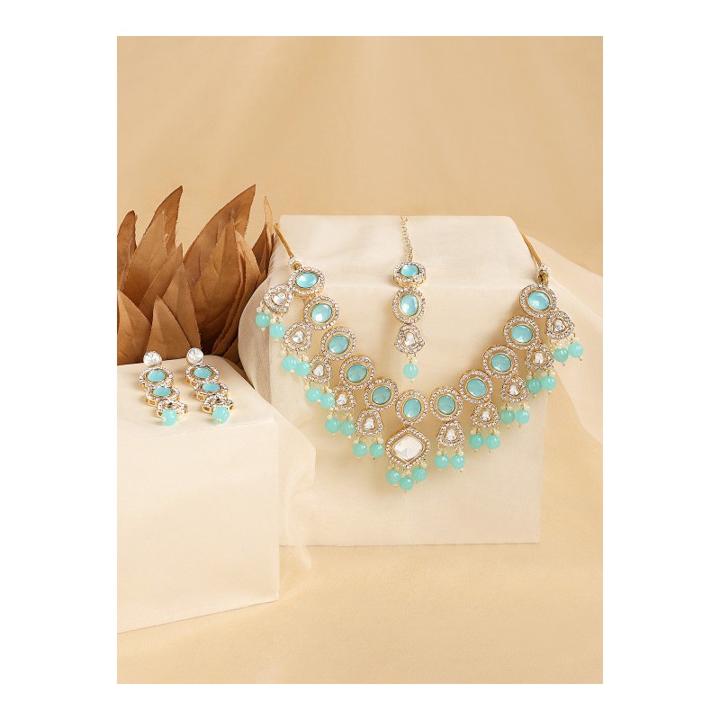 Металл - под золото. Камни белые, нежно бирюзовые, искусственный жемчуг.
