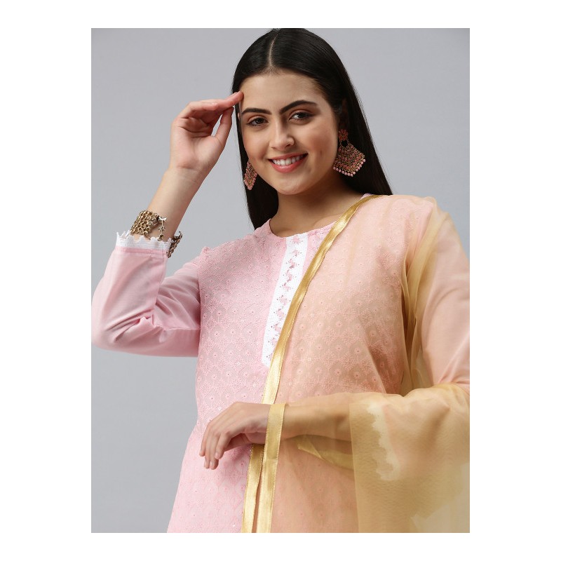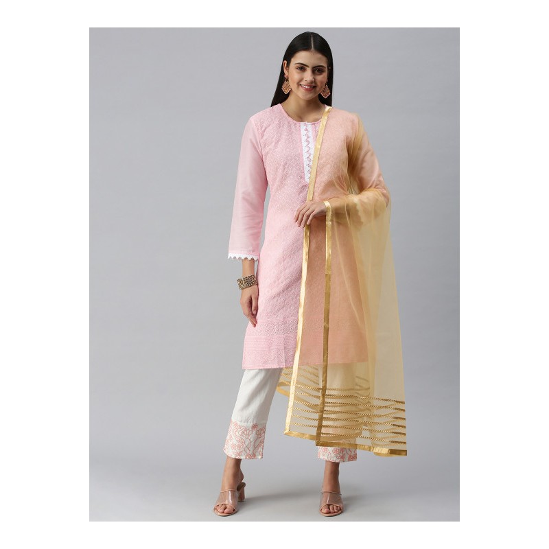 Индийское покрывало на голову дупатта бежевая с выщивкой готта патти, обшитая золототистой каймой со всех сторон.