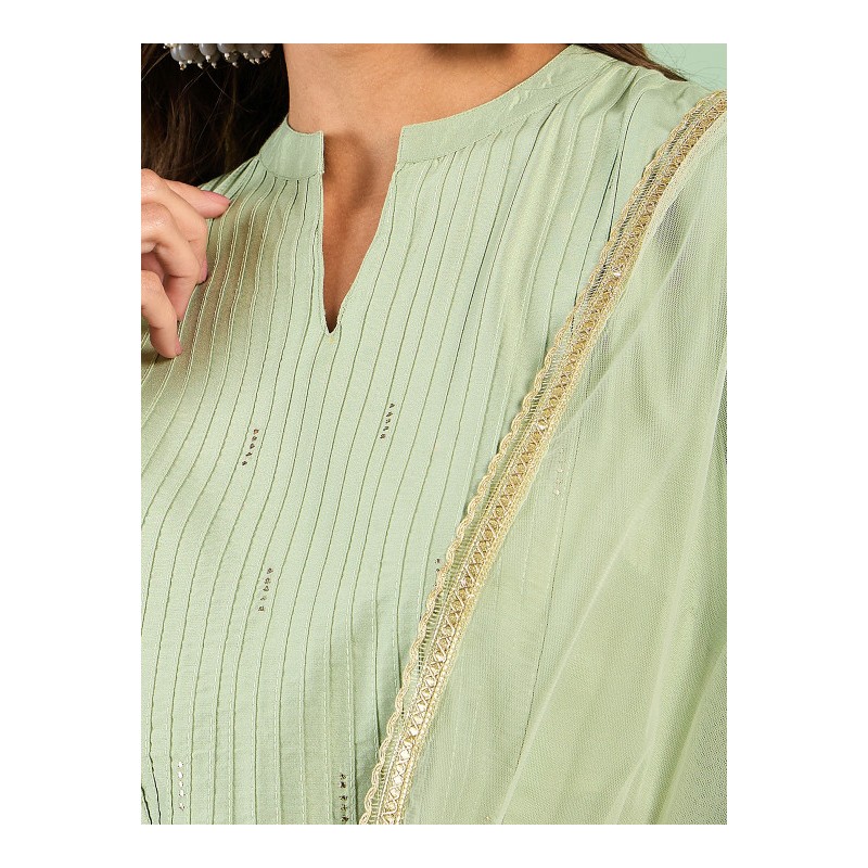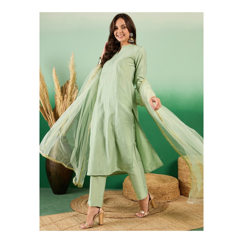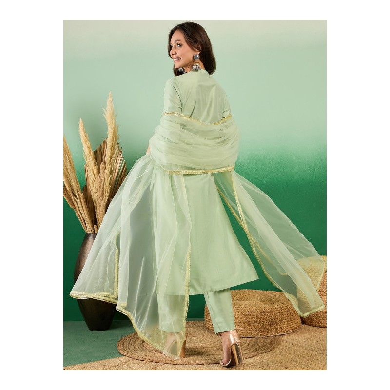 Индийский костюм праздничный светло зеленый с вышивкой мелкими пайетками: