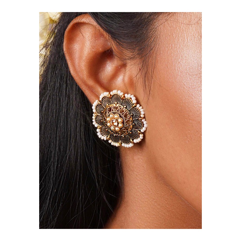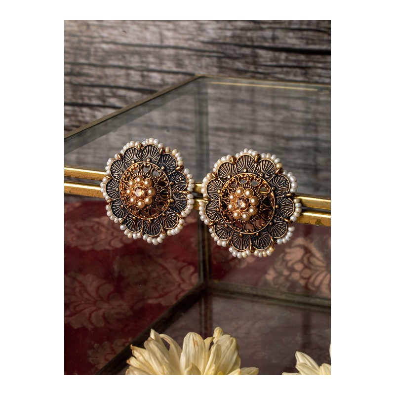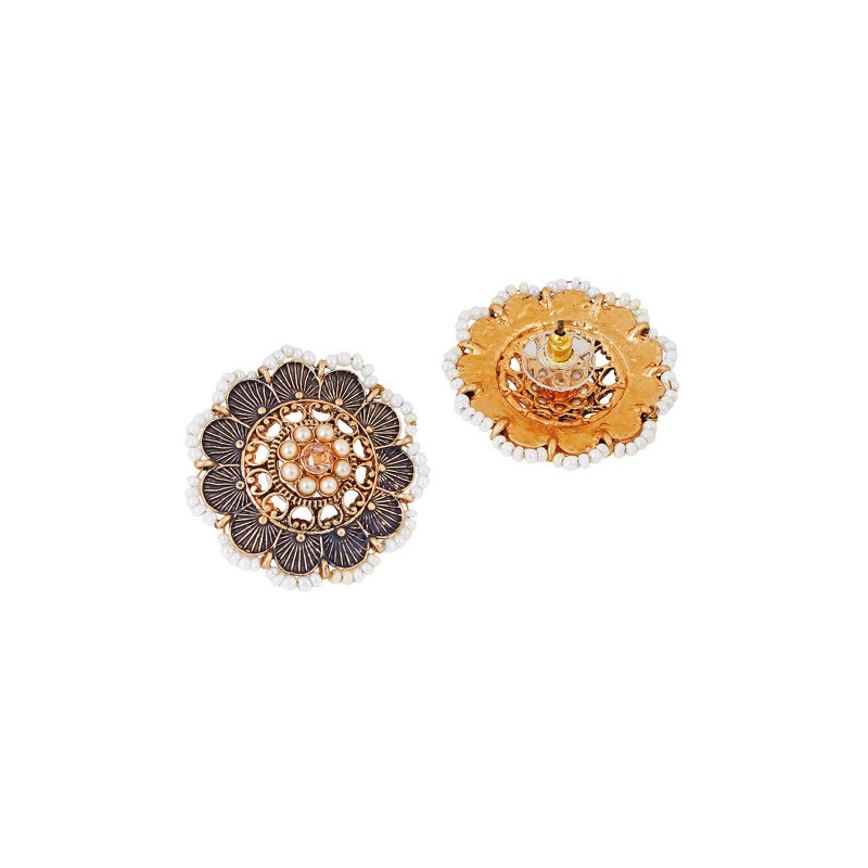 Индийские серьги-гвоздики с синей эмалью и искусственным жемчугом.
