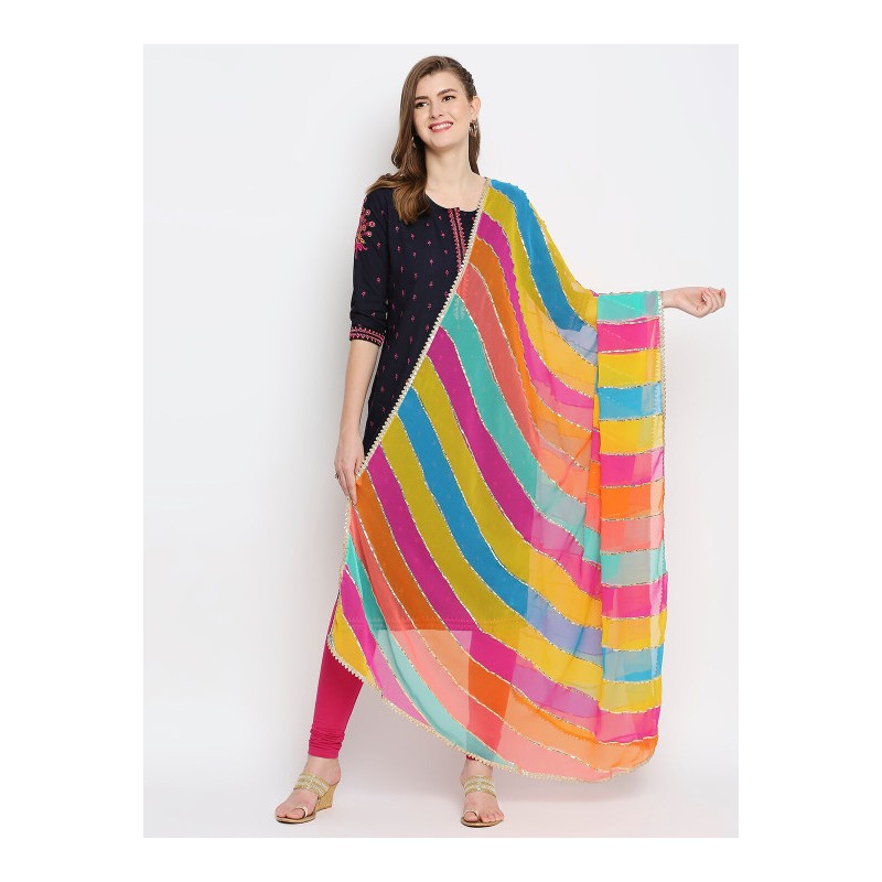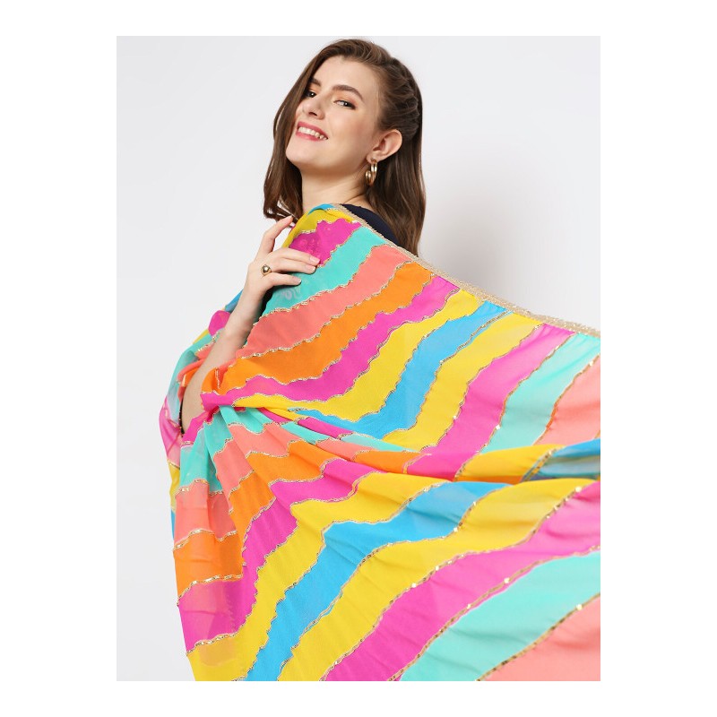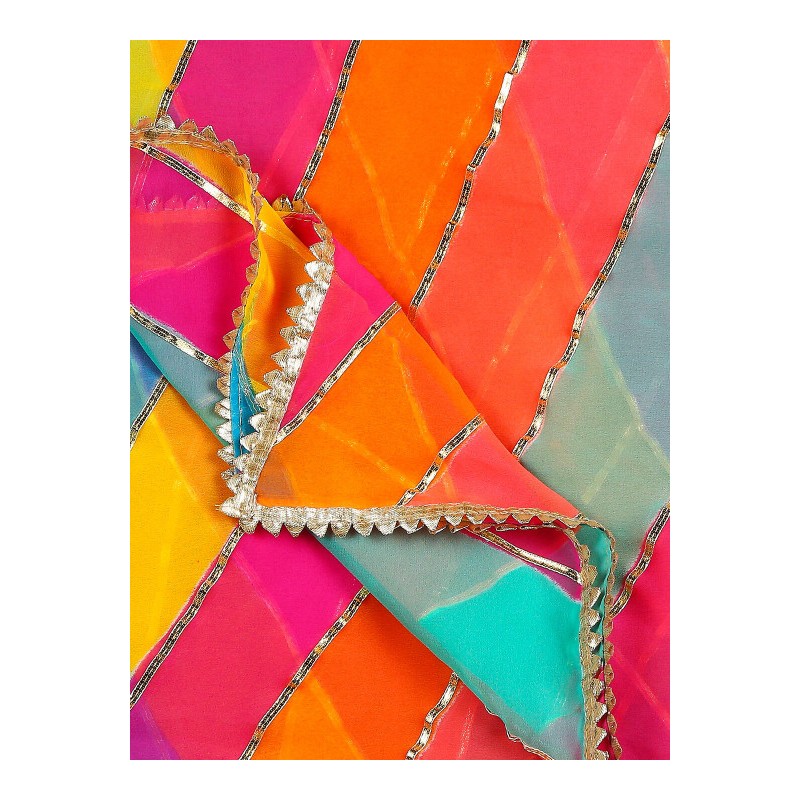 Индийское покрывало на голову дупатта яркой расцветки, обшитая золототистой каймой со всех сторон.