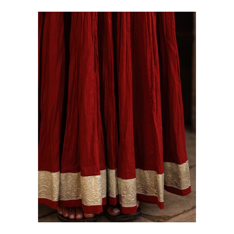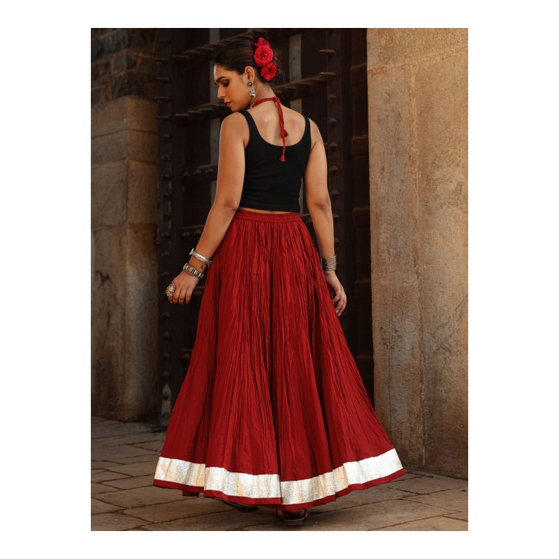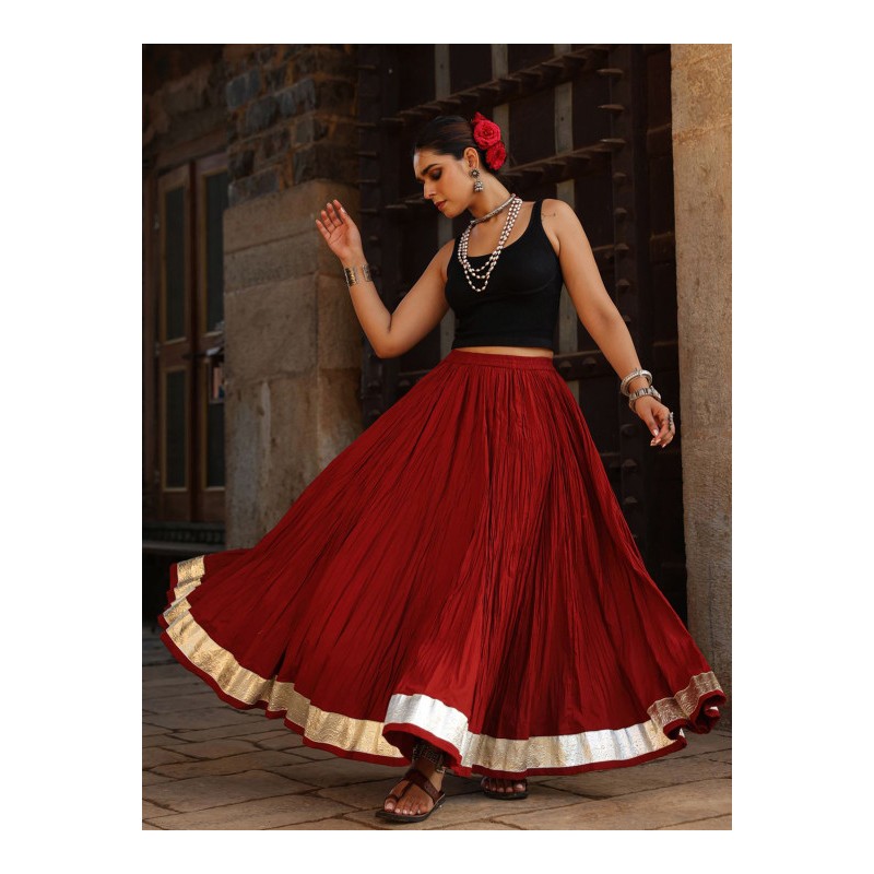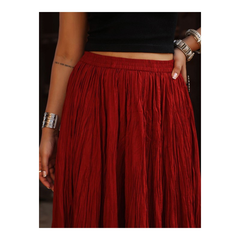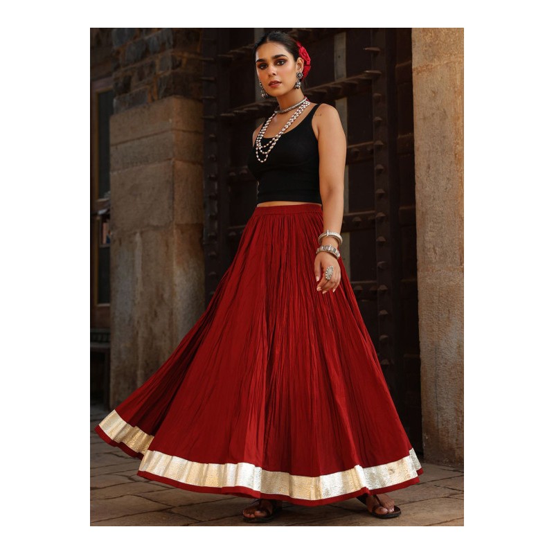 Длинная бордовая юбка из Индии с тесьмой по подолу. На поясе резинка.