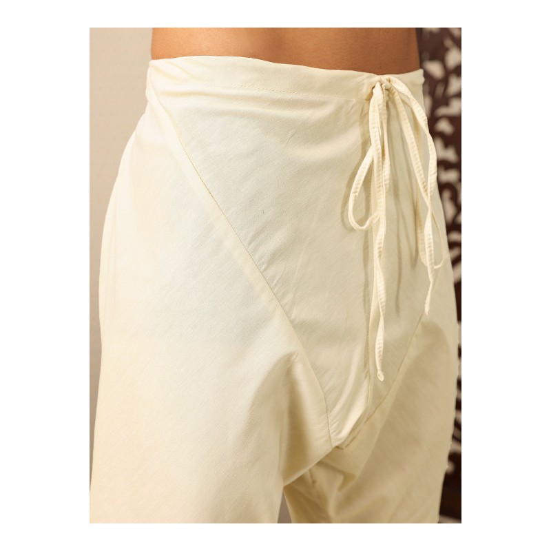 2) штаны чуридары кремового цвета, на поясе штаны затягиваются шнурком.