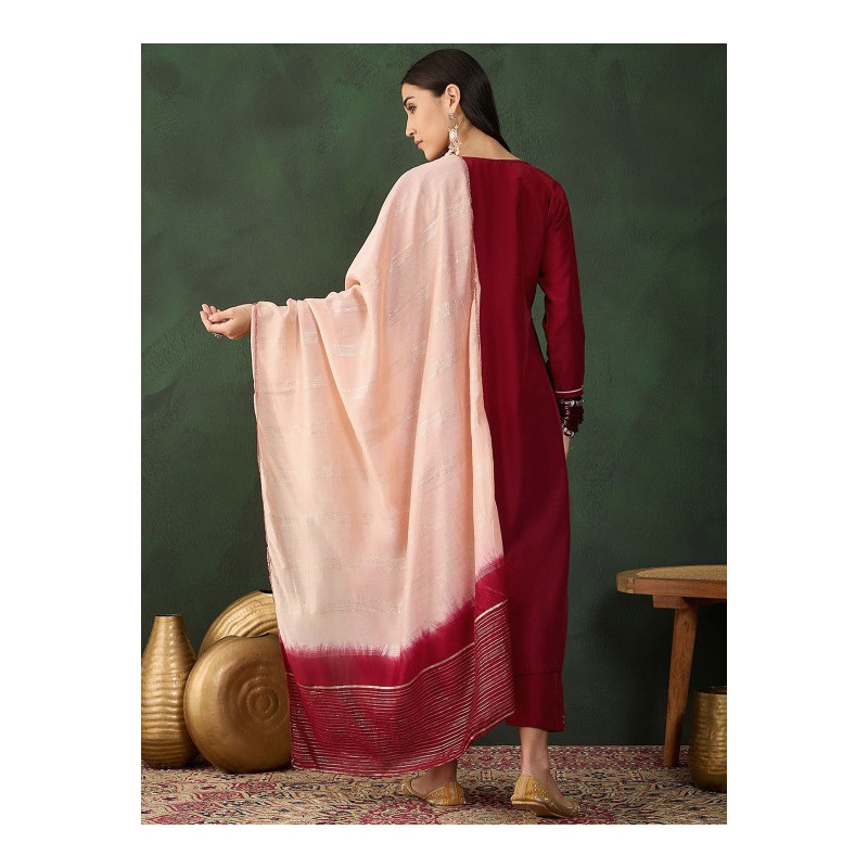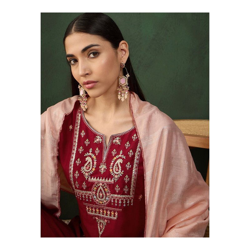Индийский костюм сальвар камиз бордовый с розовой дупаттой: