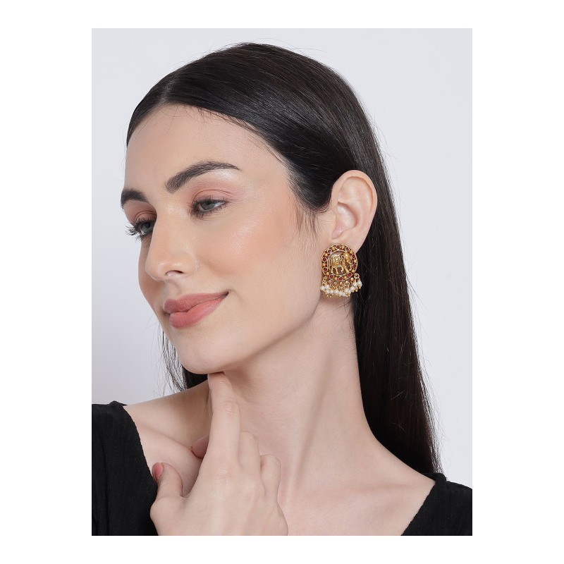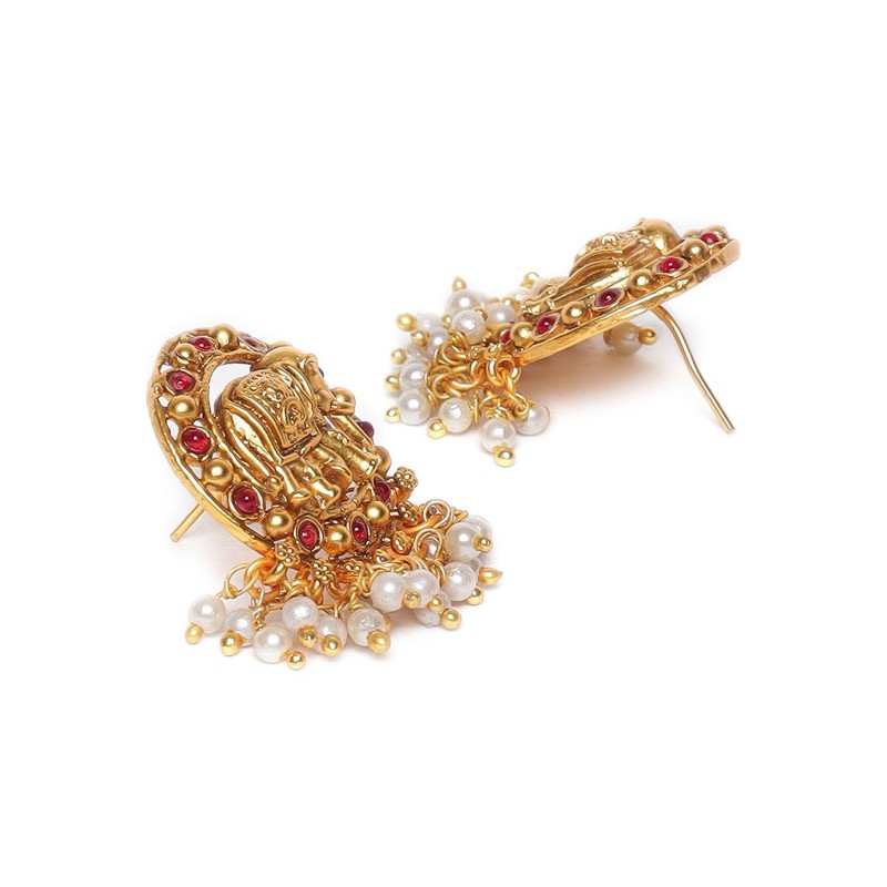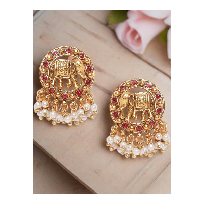 Индийские серьги-гвоздики с розовыми камнями и белым искусственным жемчугом.