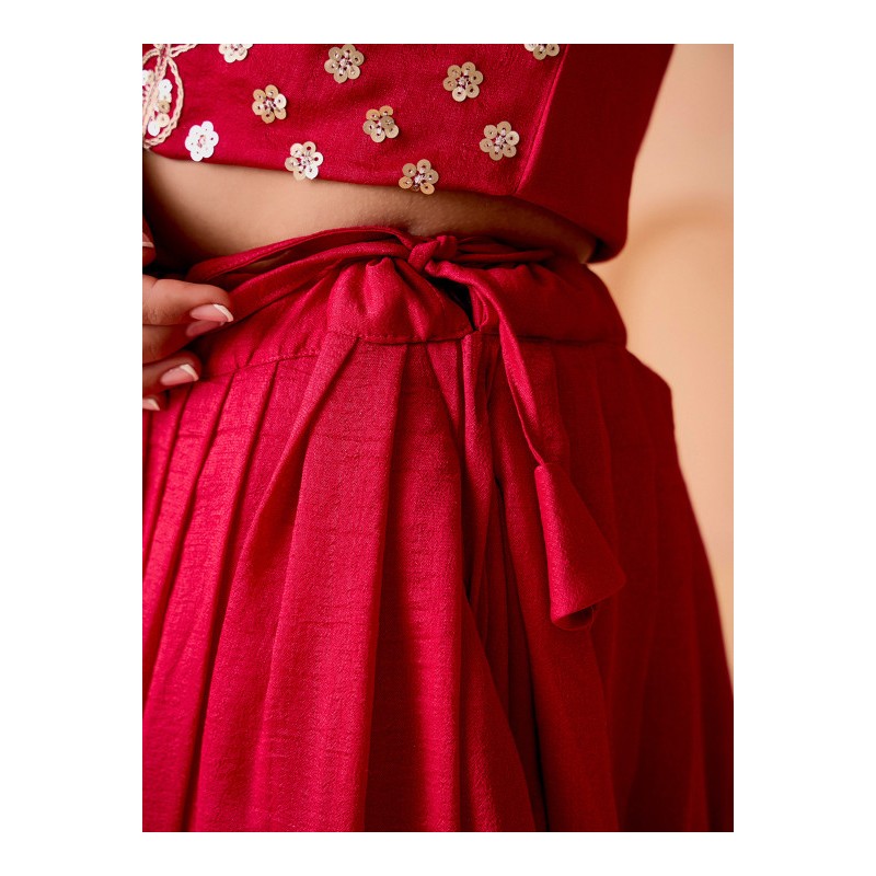 Индийский женский праздничный костюм состоит из пышной юбки и расшитой короткой блузки.
