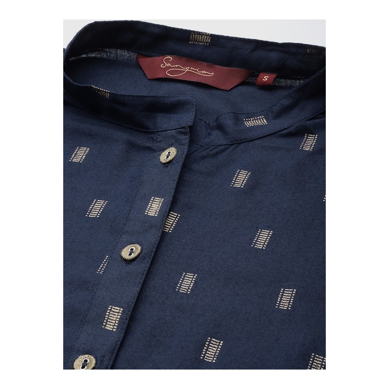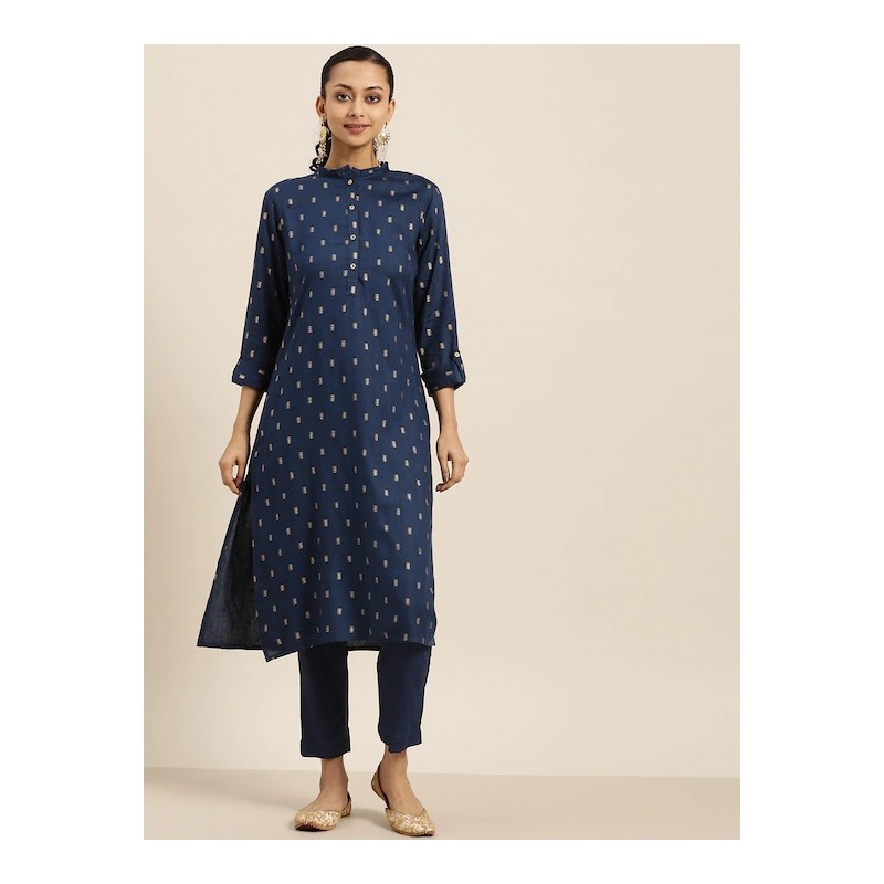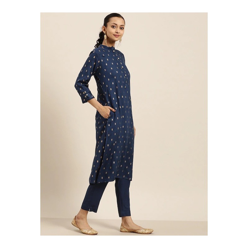 1) у туники прямой силуэт, китайский воротник с планкой пуговиц, рукава три четверти, карман справа, разрезы по бокам;