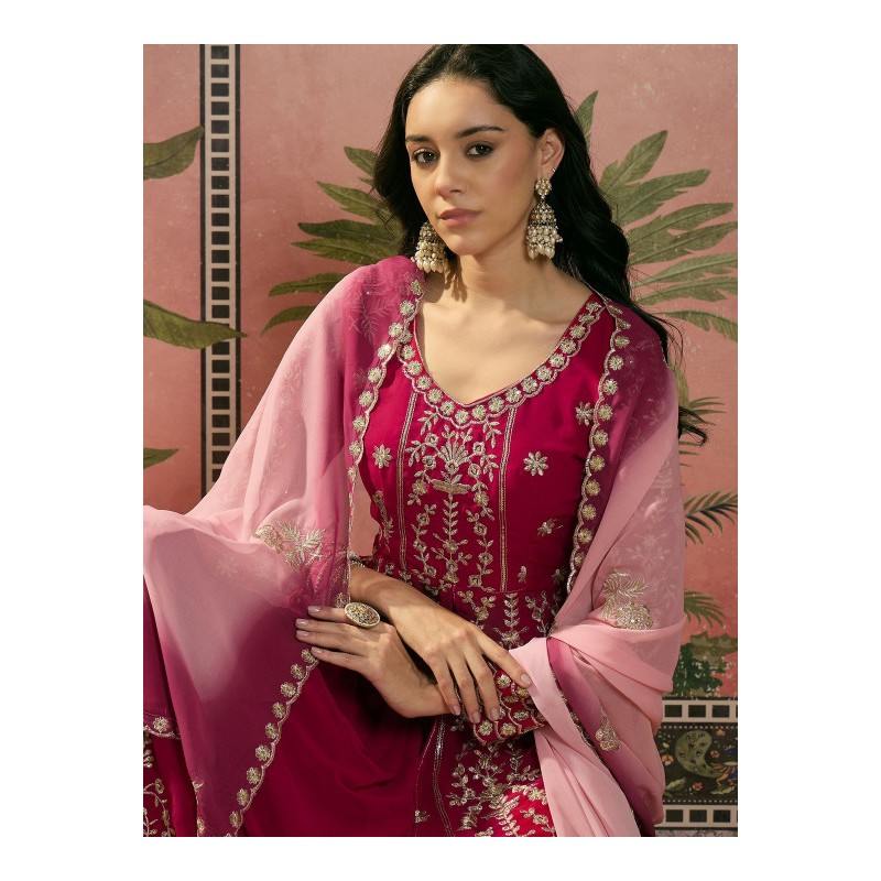 3) дупатта с градиентом от персикового до розового с вышивкой.