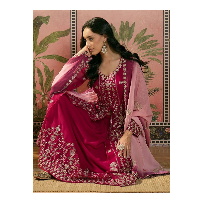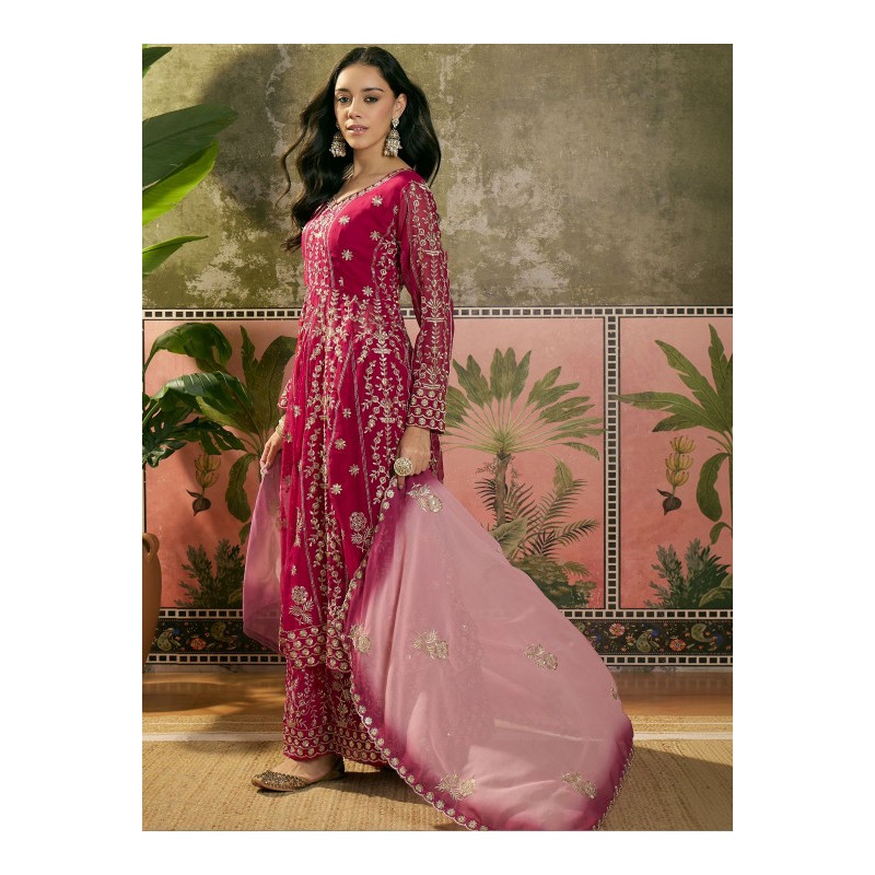 Индийский костюм ярко розовый юбочный костюм с дупаттой: