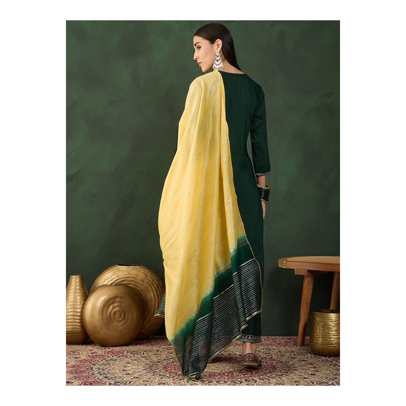 Индийский костюм сальвар камиз зеленый с желтой дупаттой: