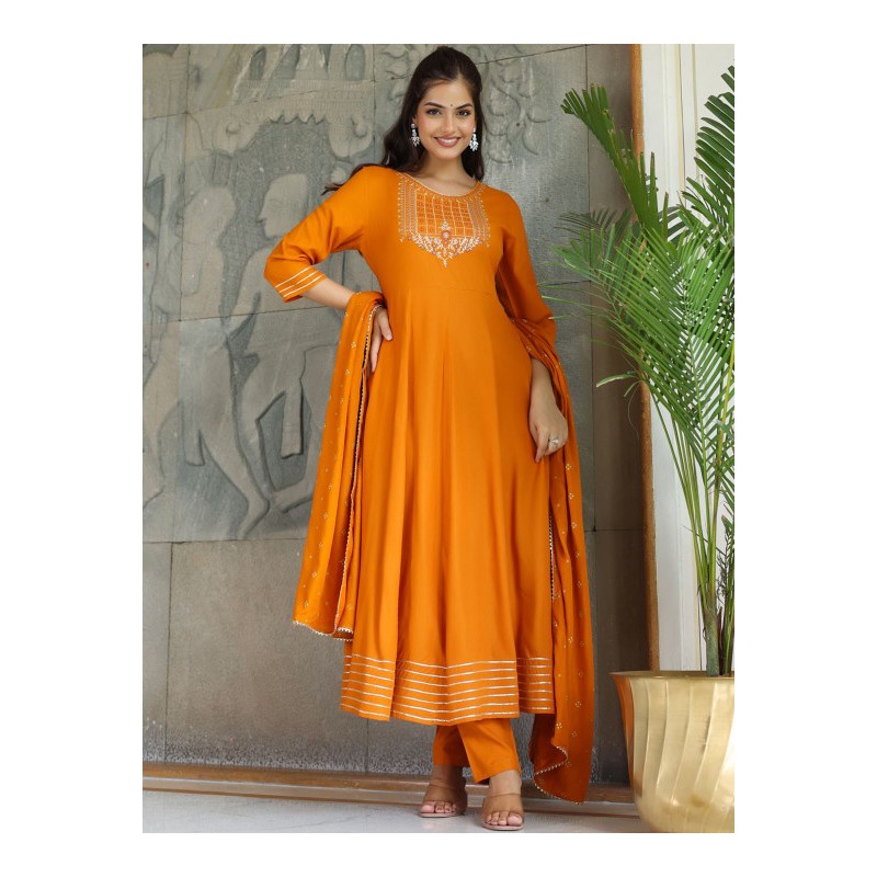 Индийский женский праздничный костюм оранжевый c вышивкой: