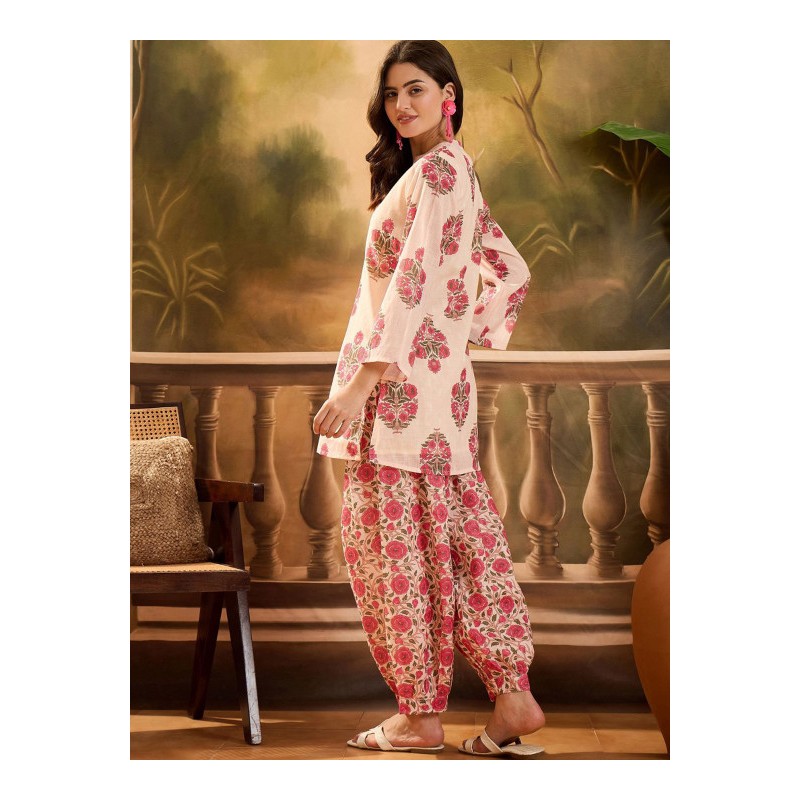 Комплект индийской повседневной одежды для женщин розовый с цветочным принтом: