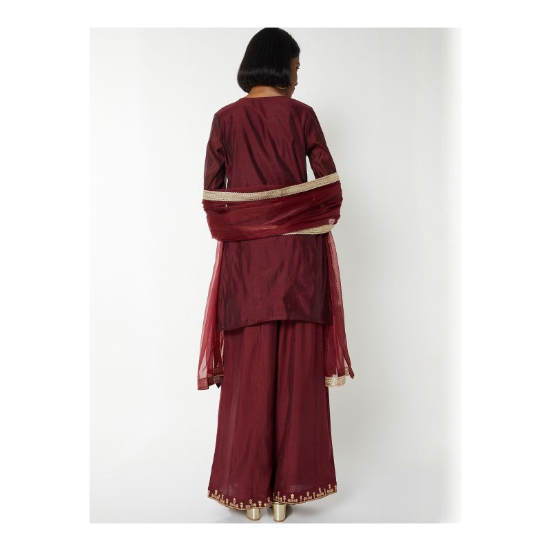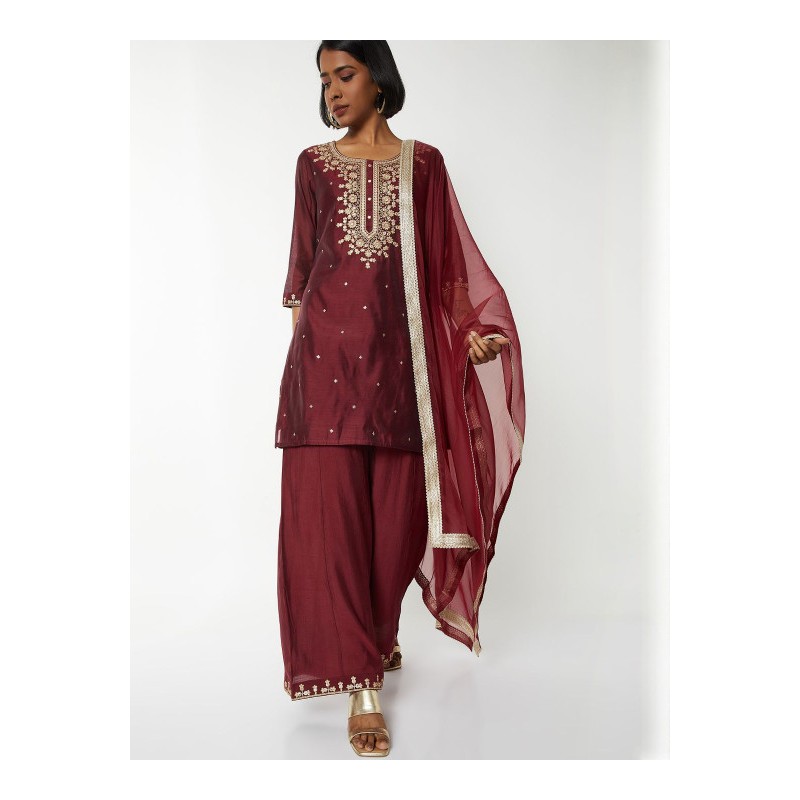 3) бордовая дупатта с золотистой тесьмой по периметру.
