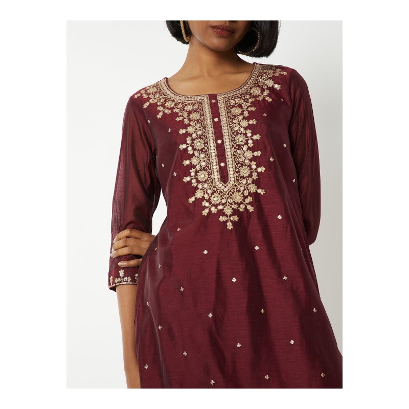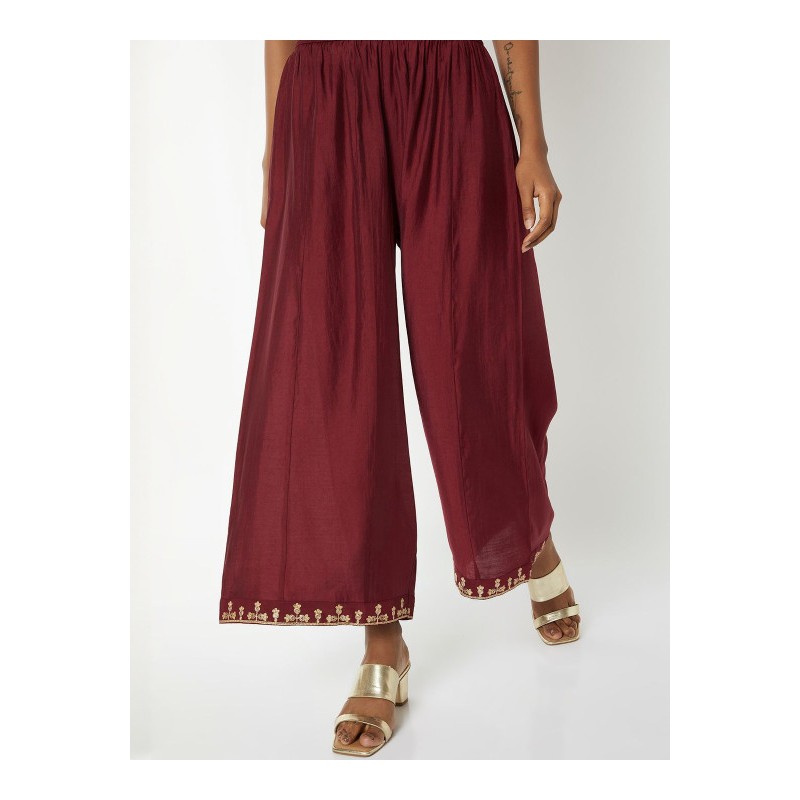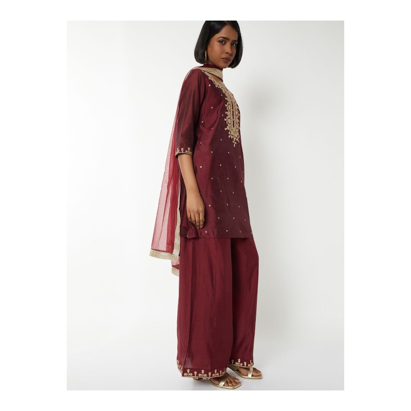 Индийский женский праздничный костюм бордового цвета с вышивкой: