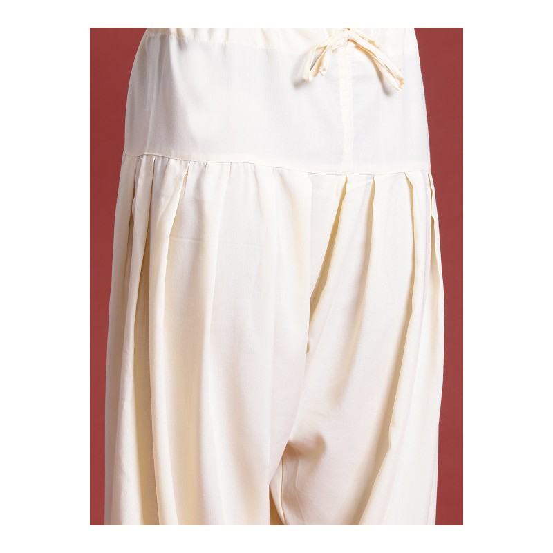 2) штаны сальвары кремового цвета, на поясе кулиска со шнурком.