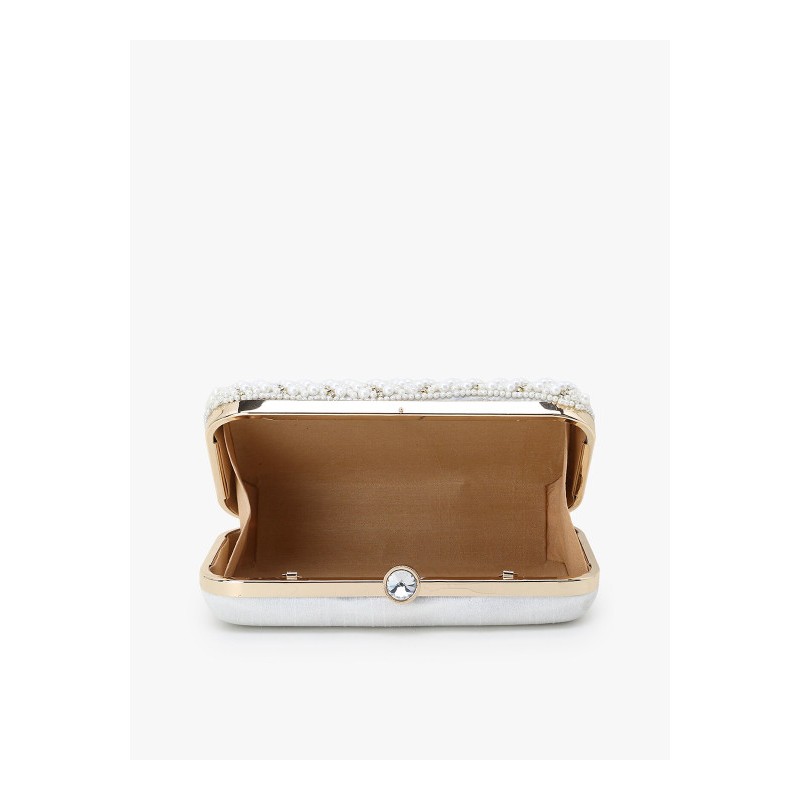 Индийская сумка клатч белая с вышивкой искусственным жемчугом и стразами