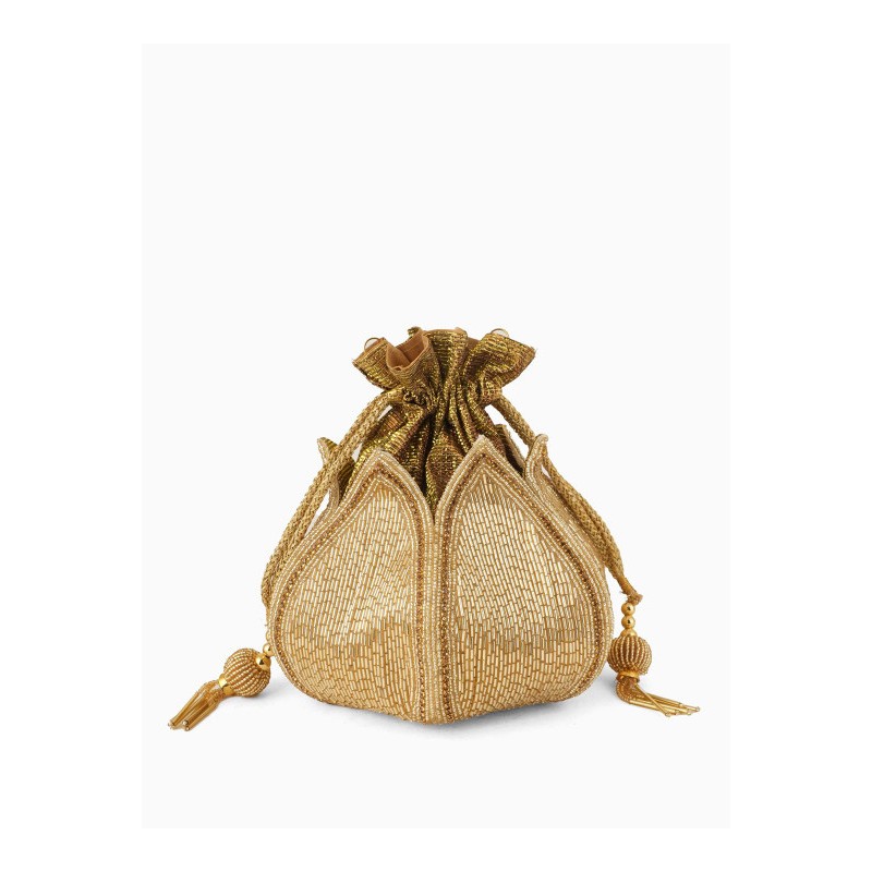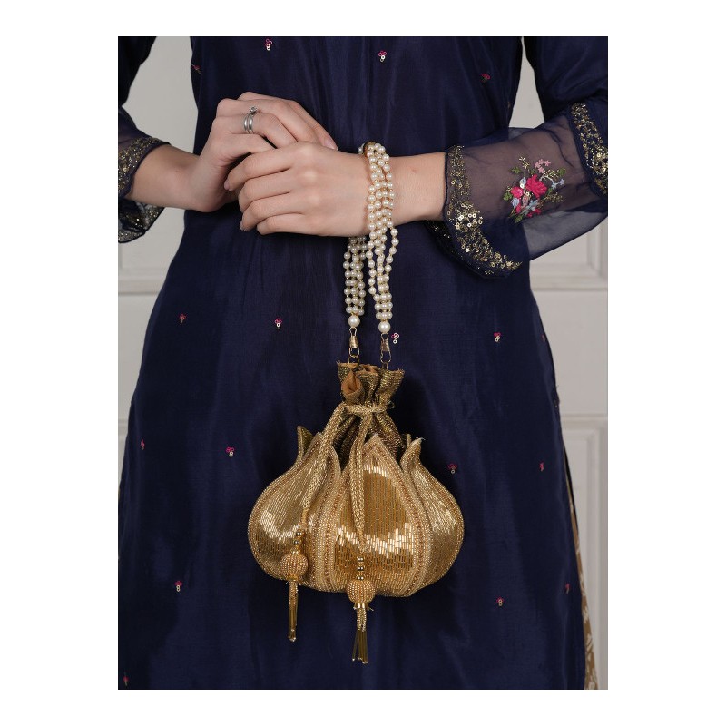 Индийская сумочка с вышивкой золотым стеклярусом с красивыми завязками.
