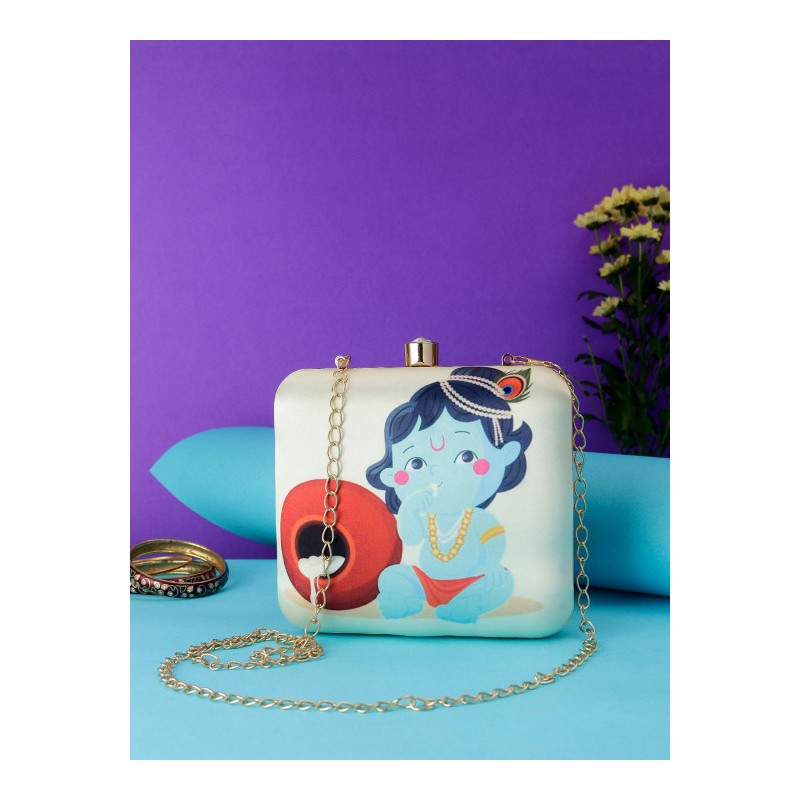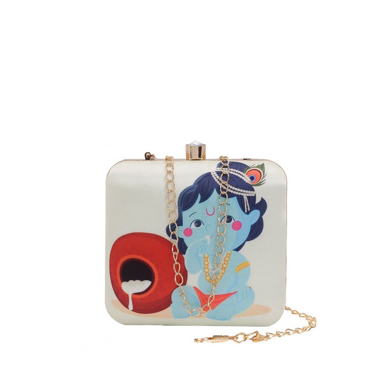 Индийская сумка клатч светлая с изображением маленького Кришны.
