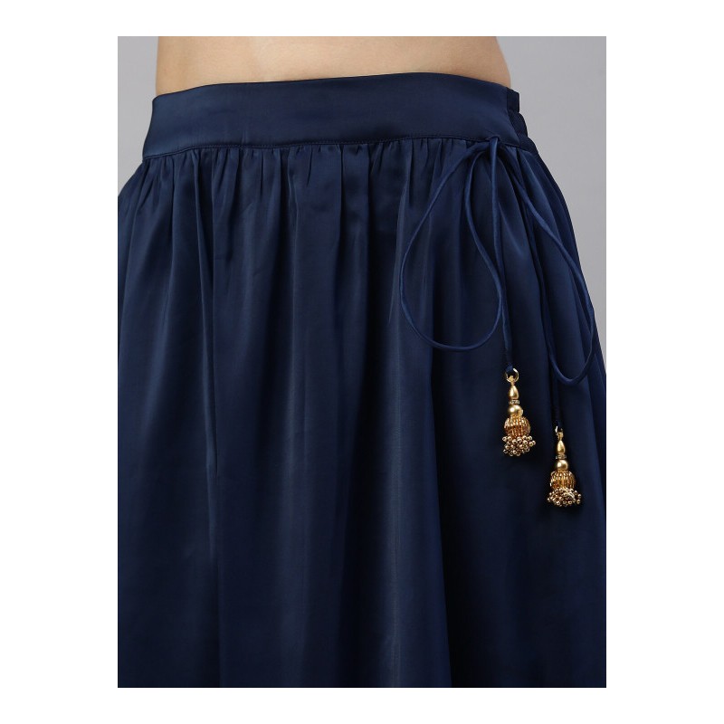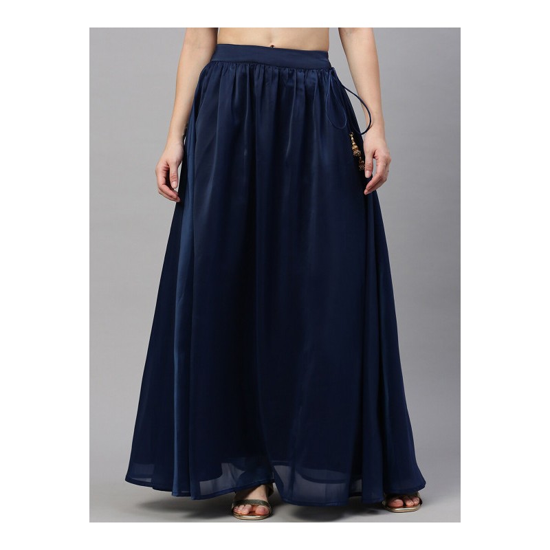 Индийская длинная юбка темно синяя. На поясе сзади - резинка. Внутри есть подкладка. Красивые декоративные элементы на шнурках.